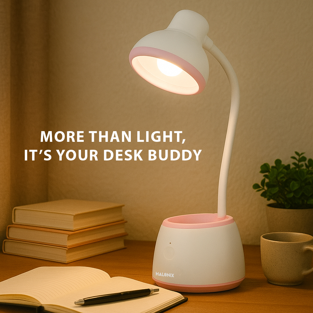 Diana Rechargeable Portable Desk Lamp is the perfect blend of style and utility with its sleek design, feather-touch control and built-in pen holder, it’s more than just a study lamp—it’s your smart desk companion.