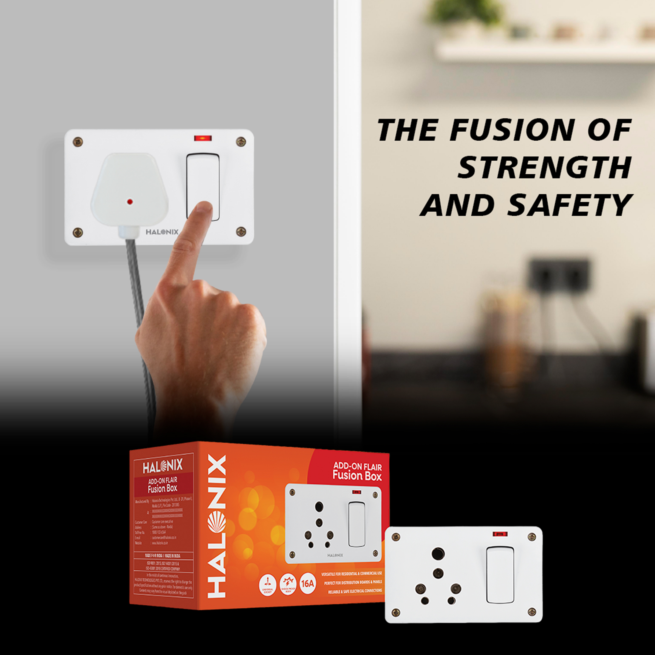 Flair Fusion Box combines strength and safety in one compact unit. Built with a robust polycarbonate body, it offers reliable performance for high-power appliances up to 3600W — ideal for both residential and commercial spaces.