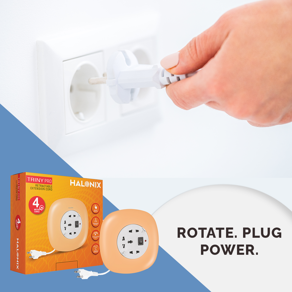 Triny Pro – Retractable Extension Cord is designed for convenience, safety and versatility. With 360° smooth rotation, a universal socket and a shock-proof body, it’s perfect for powering multiple devices at home or office. Available in 4m & 8m lengths, it ensures freedom, flexibility and safe connectivity for all your gadgets.