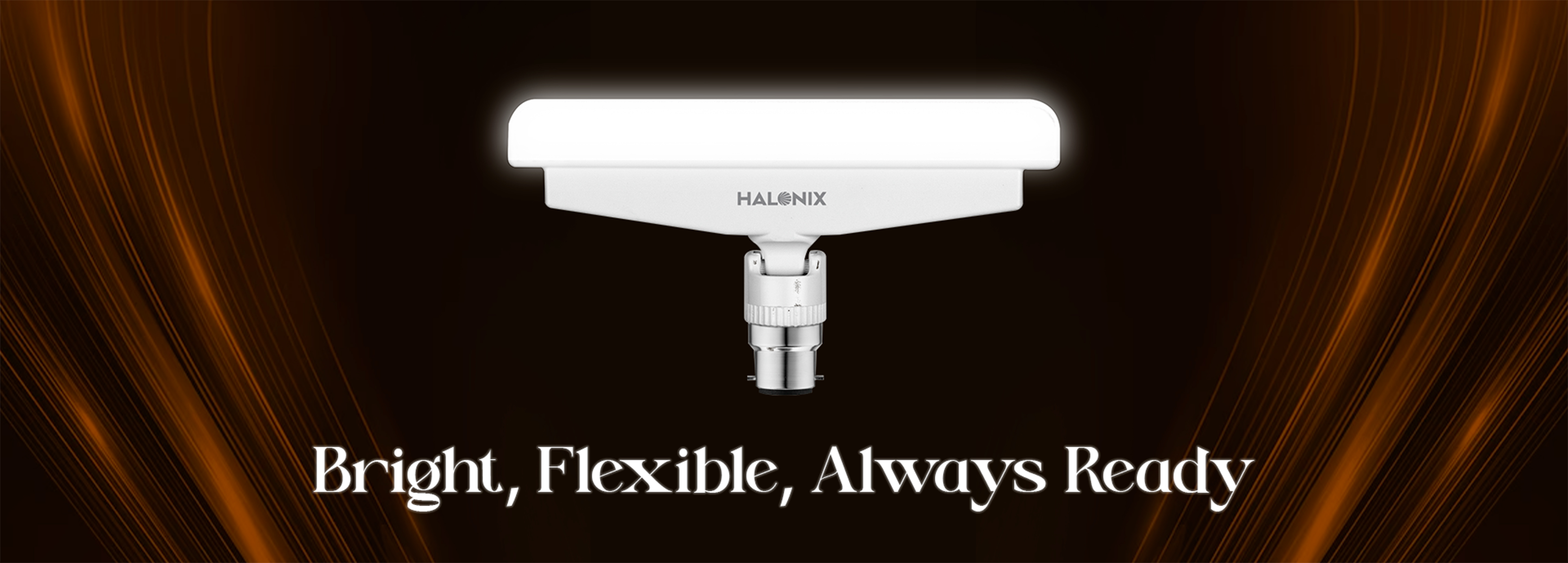 Halonix Rechargeable Emergency T-Bulb in 10W combines modern design with powerful performance—offering up to 4 hours of backup, flexible 360° rotation and wider light spread for every corner of your home.