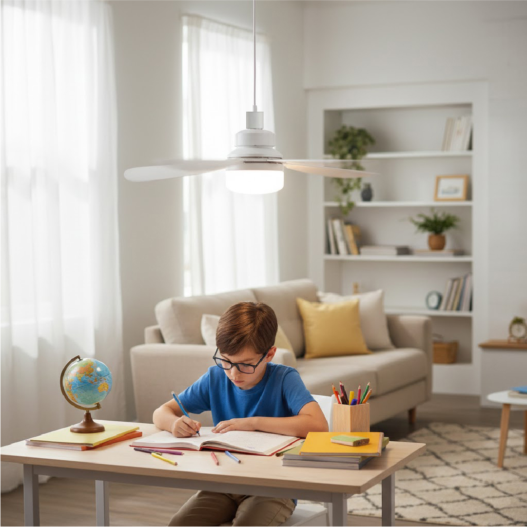 A smart combination of a ceiling fan and light, designed to bring comfort, convenience and modern functionality to your space.