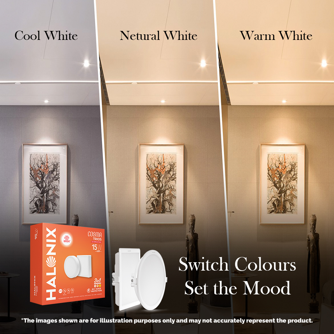 Cosma Neo Trios LED Recess Panel brings style, efficiency and versatility together in a slim and robust design. With a simple On/Off switch action, you can easily switch between Cool White, Neutral White and Warm White, making it ideal for any mood or setting.