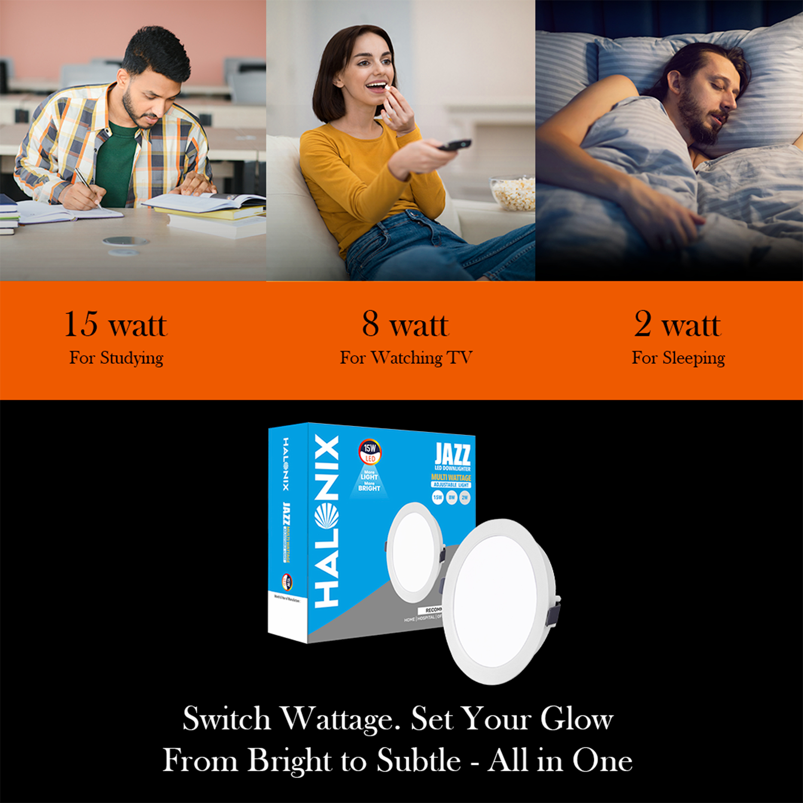 Jazz Multi-Wattage LED Downlighter is a smart, energy-efficient lighting solution designed to adapt to your needs. With 3 wattage options in one fixture (15W–8W–2W or 10W–5W–0.5W) one can easily switch wattage by simply turning the light On/Off, making it versatile for daily use across different settings.