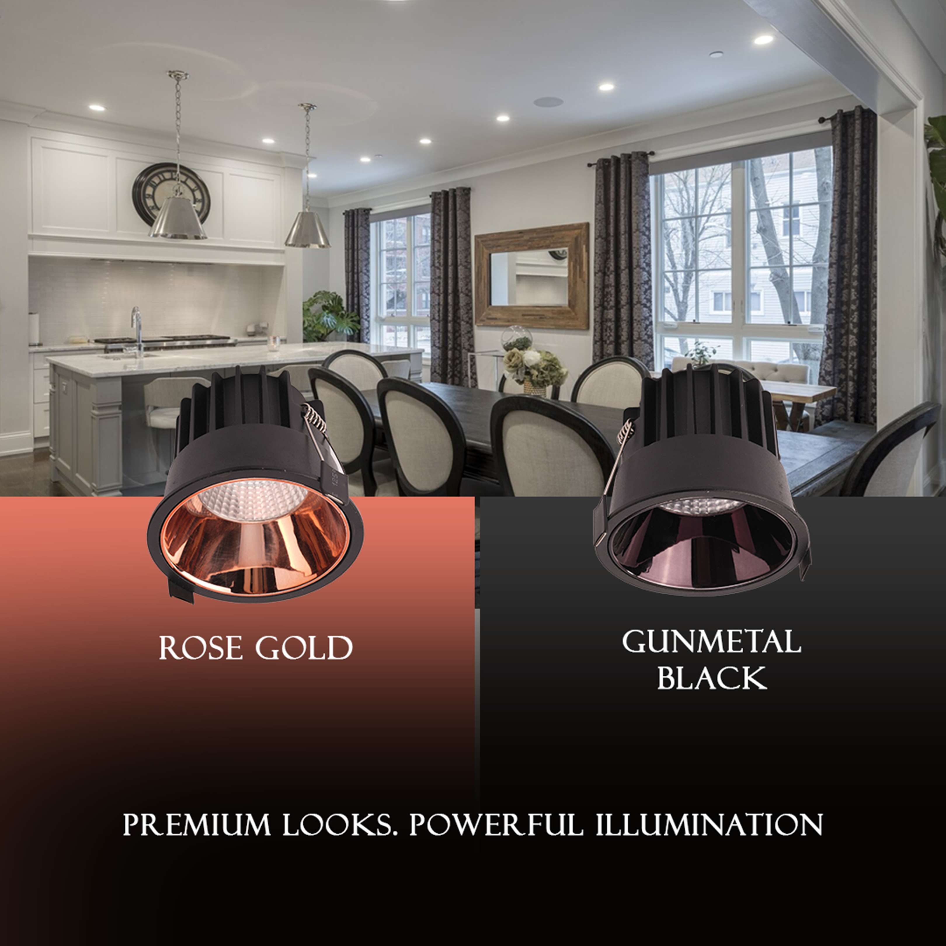 Available in two premium reflector colour finishes – Rose Gold & Gunmetal Black