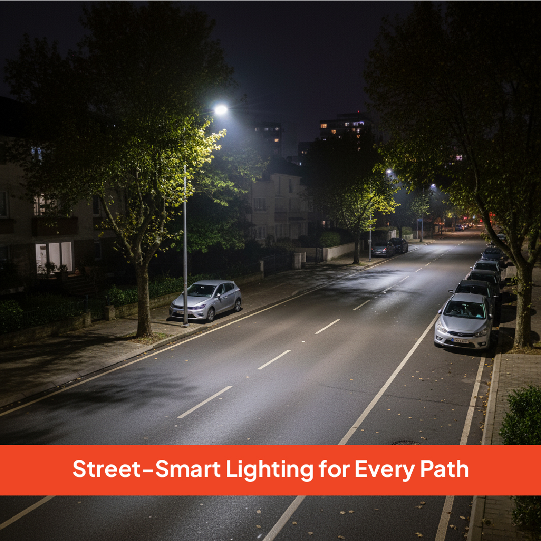 Lumin LED Street Light is a perfect outdoor lighting solution, combining high lumen efficacy, waterproof protection and durable design. Built for efficiency and reliability, it’s ideal for roads, parks, residential colonies and commercial spaces.