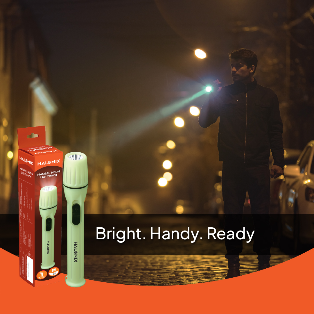 Massal Neon 1W LED Torch Light is built for brightness and style. With its super white LED beam and high-glow radium body, this torch is perfect for emergencies, camping or daily use. Made from durable plastic and powered by AA batteries, it ensures reliable light anytime, anywhere.
